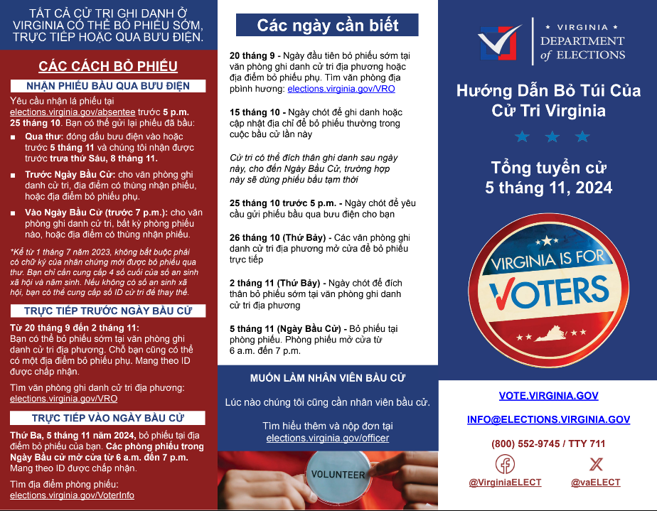 Hướng Dẫn Bầu Cử Bỏ Túi cho Tổng Tuyển Cử ngày 05 tháng 11 năm 2024 tại Tiểu Bang Virginia